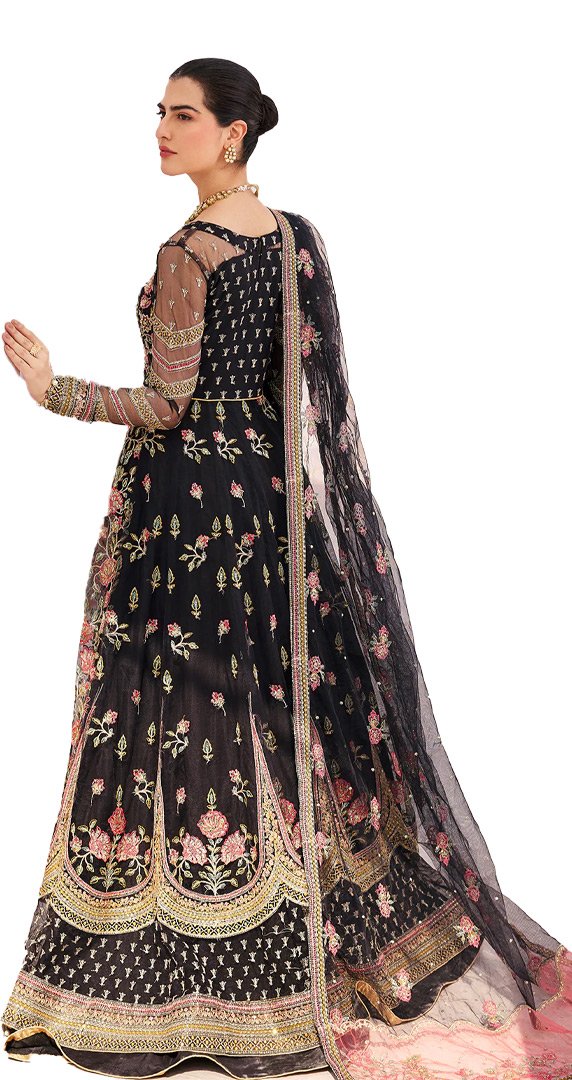 The Embroidered is handmade front with sequence (Net). Embroidered back with sequence (Net). Embroidered handmade sleeve with sequence (Net). Embroidered patch for daman (Organza). Embroidered dupatta with sequence (Net). Embroidered pallu for dupatta (Organza). Embroidered dupatta patti (Organza). Raw silk for lining 2.5 yard. Raw silk trouser 2.5 yard